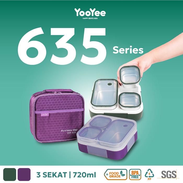 Yooyee Kotak Makan Stainless 3 Sekat Set dengan Tas 635 plastik steel Kitchenware - Hijau Army