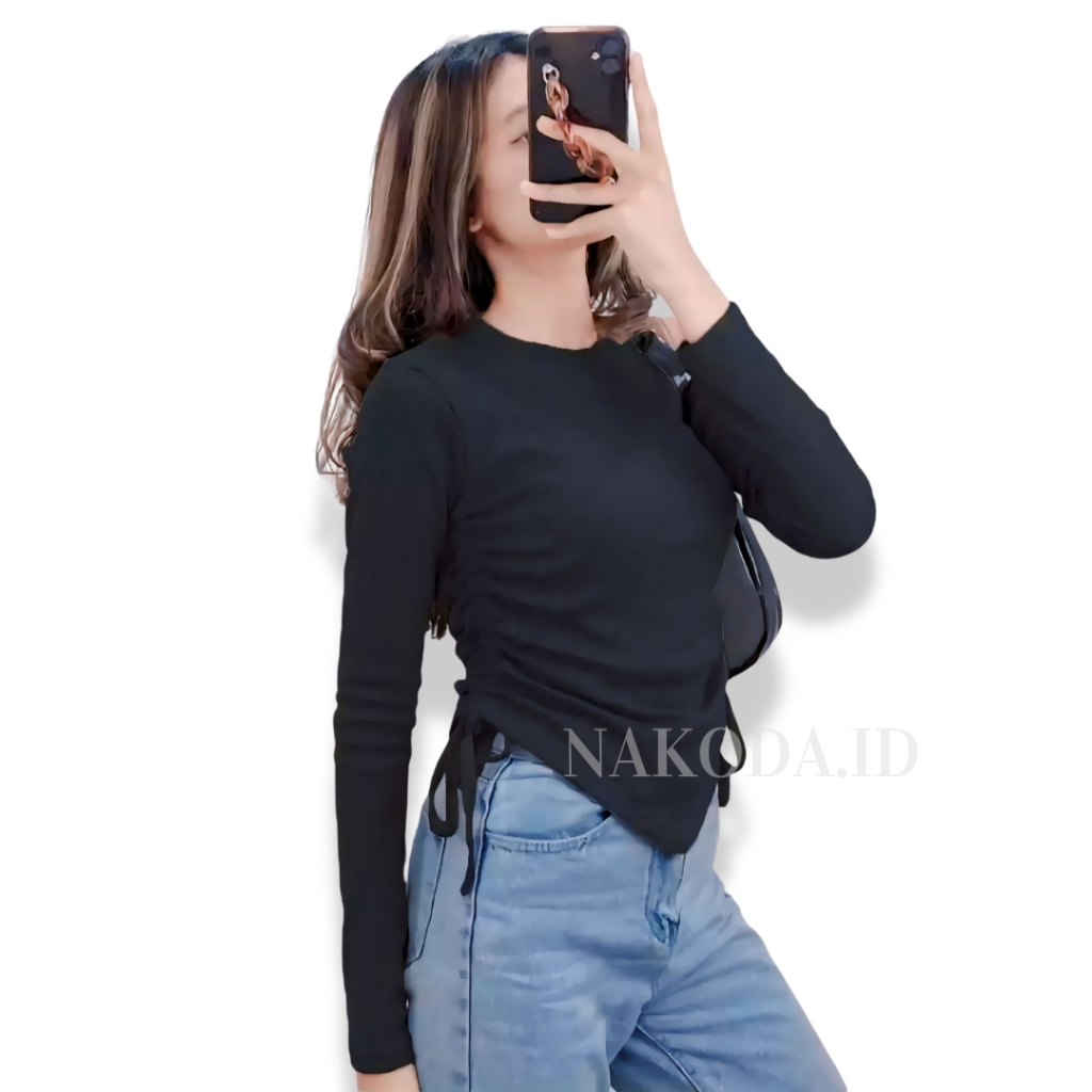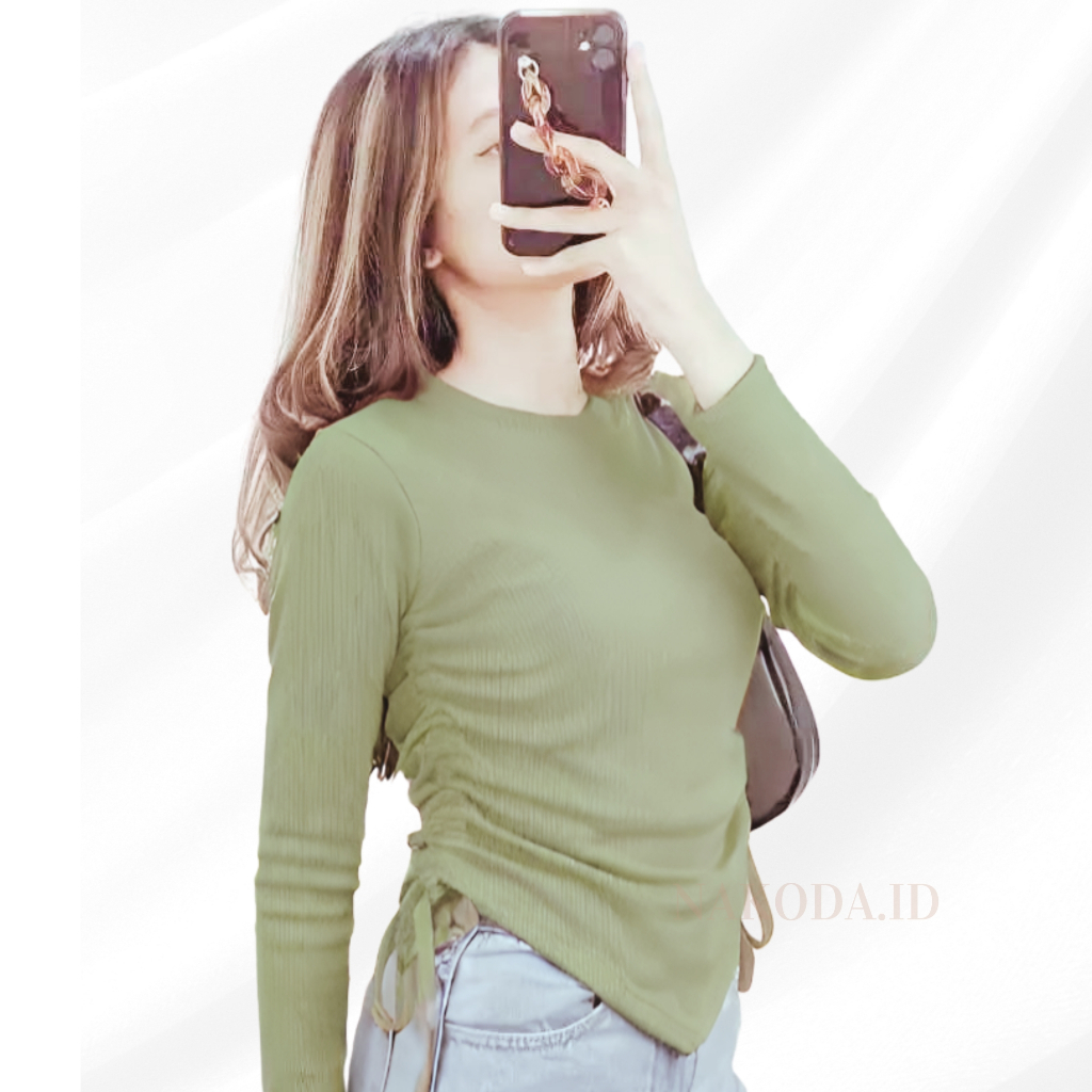 Valen Top Crop Blouse S M L XL Atasan Wanita Knit Kaos Terbaru Blus Rib Polos Kekinian Viral