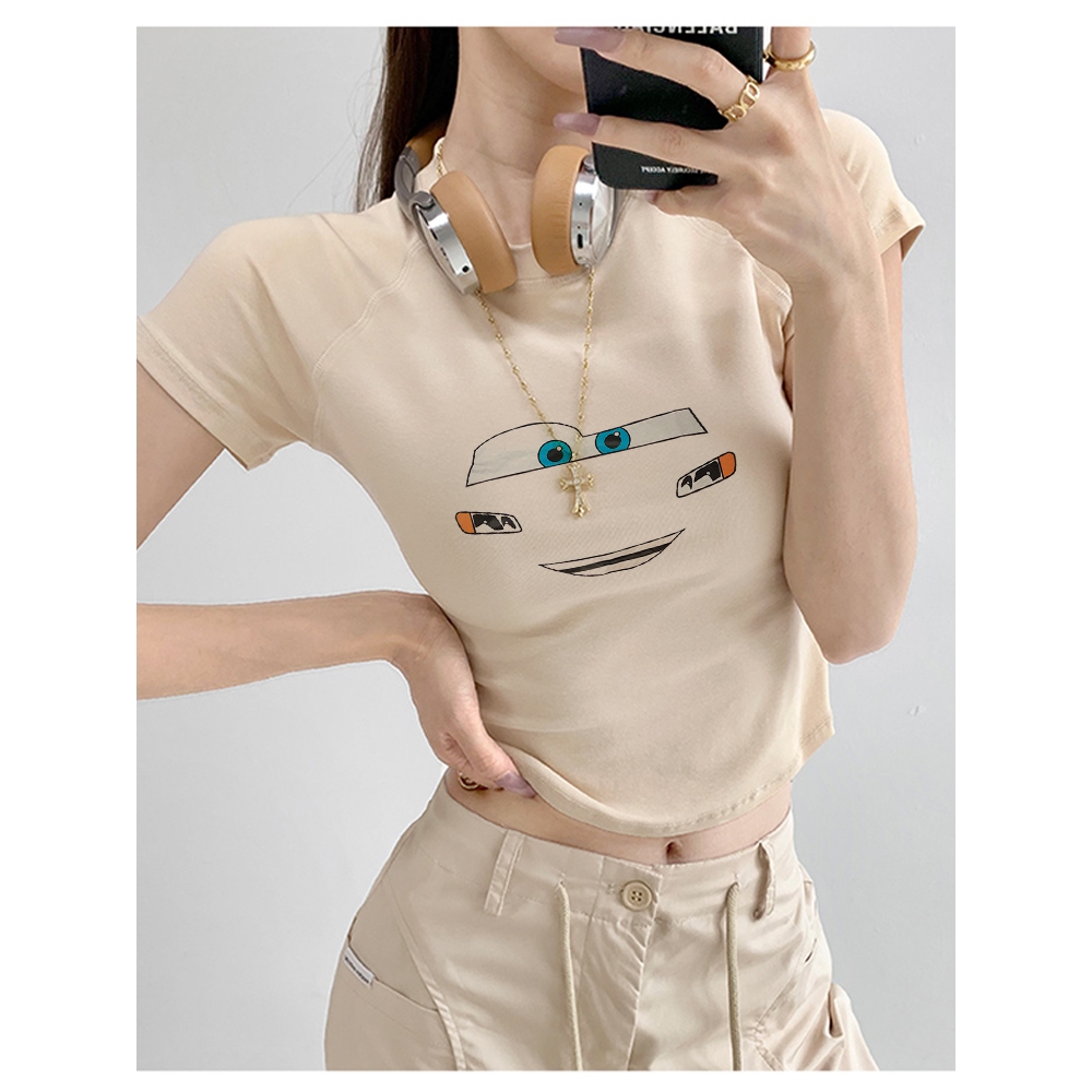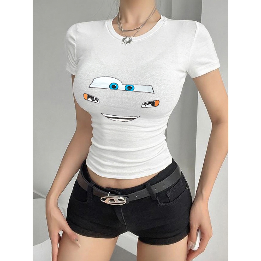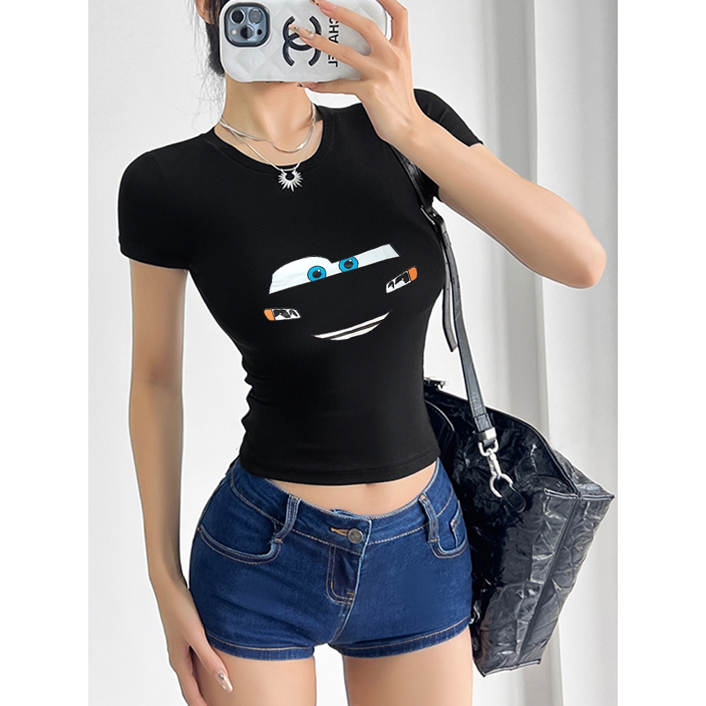 KumiKumi T-shirt Crop Top Tebal y2k Lengan Pendek Baju Kaos Crop Wanita | Petir Mike | Baju Atasan Wanita Terbaru Cropte