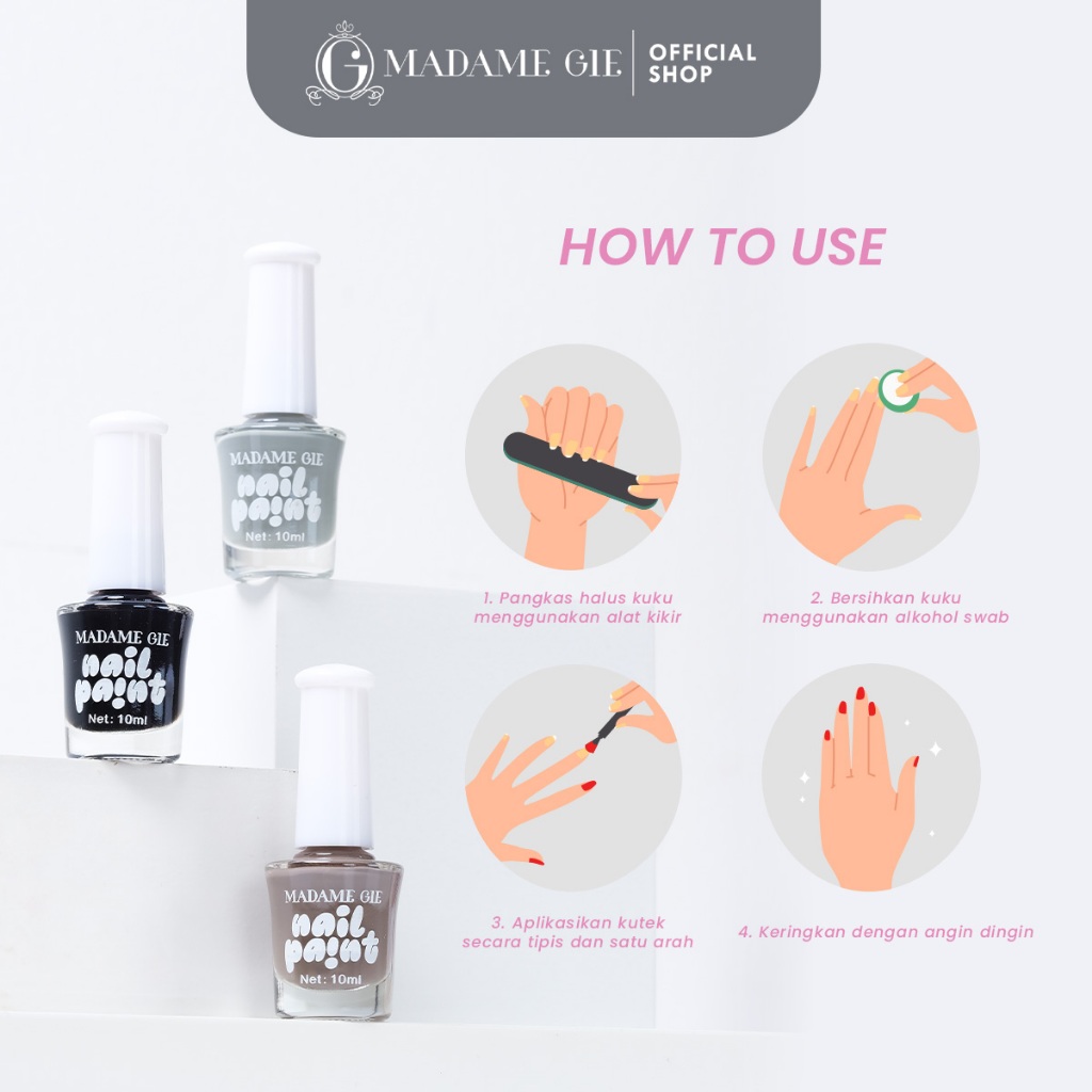 Madame Gie Nail Paint Kutek Gel 10ml - Long Lasting Non Streaky Application