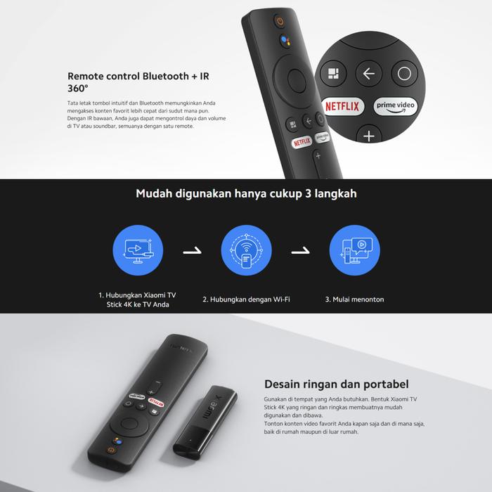 XIAOMI TV STICK 4K | RAM 2GB ROM 8GB | ANDROID TV 11.0 | SUPPORT GOOGLE ASSISTANT & SMART CAST | GARANSI RESMI - 1080P, NON BATTERY