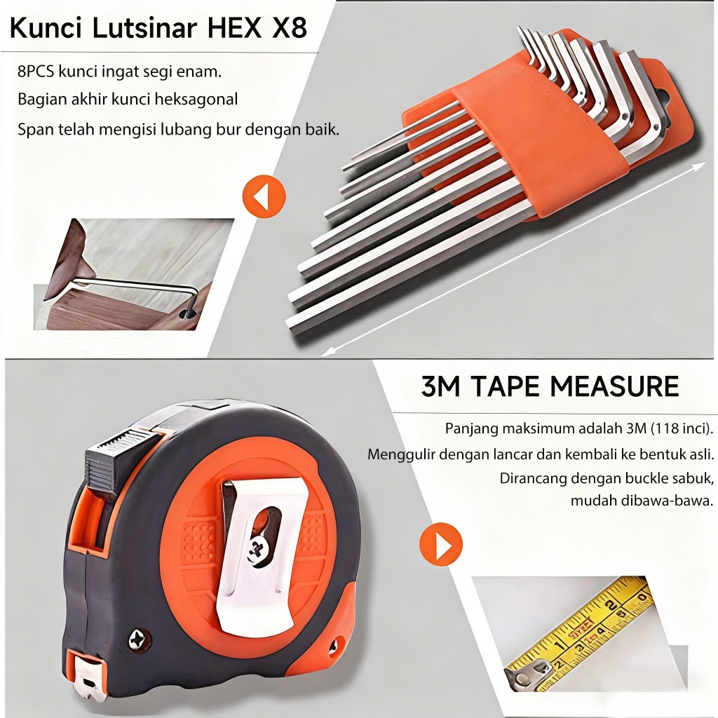 REAIM Kunci Set Lengkap 62PCS Hand Toolset Rumah Tangga Tool Kit Set / Toolkit Set