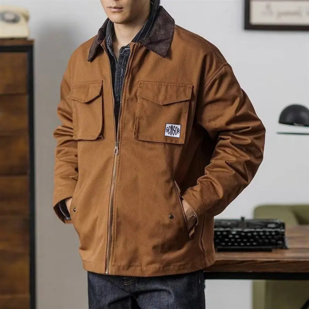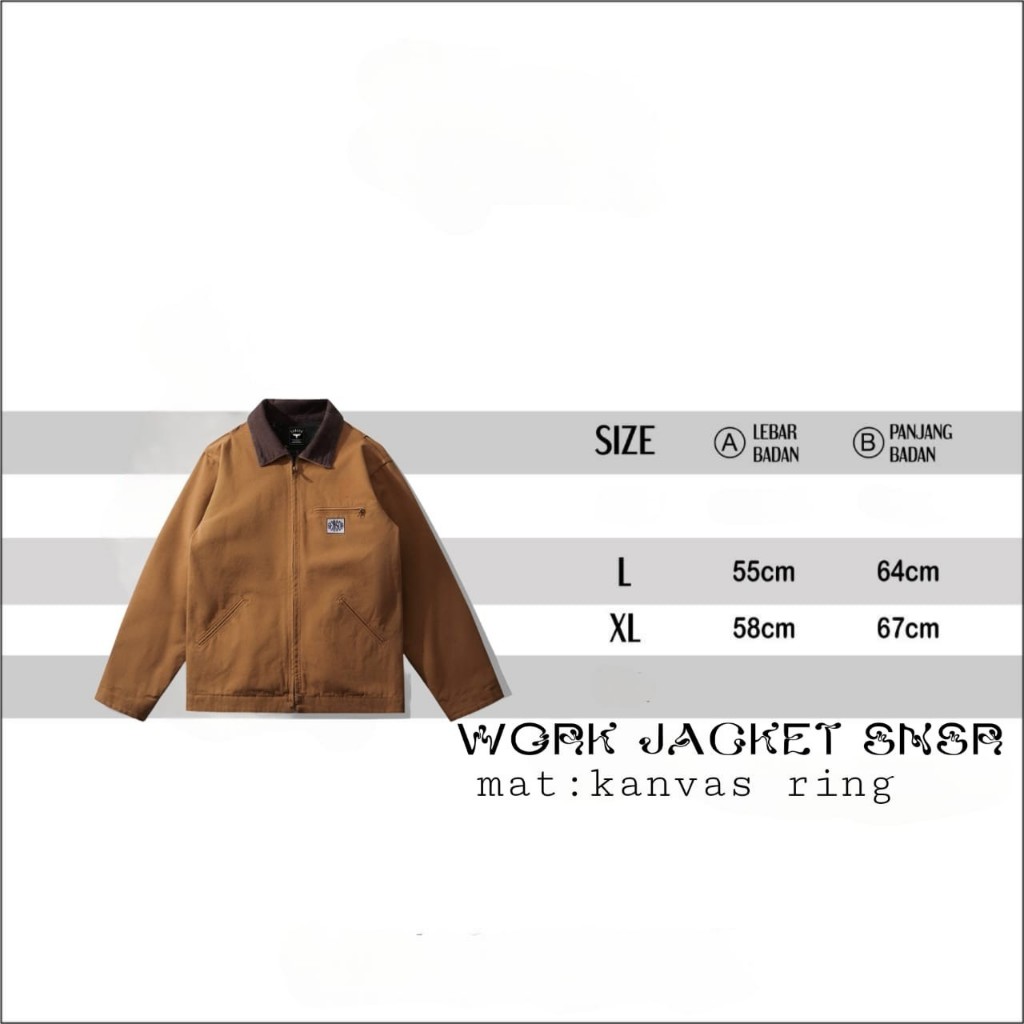 SNSR - Work Jaket Pria Vintage Casual Premium Zipper Bahan Kanvas Ring Tebal Kerah Suede