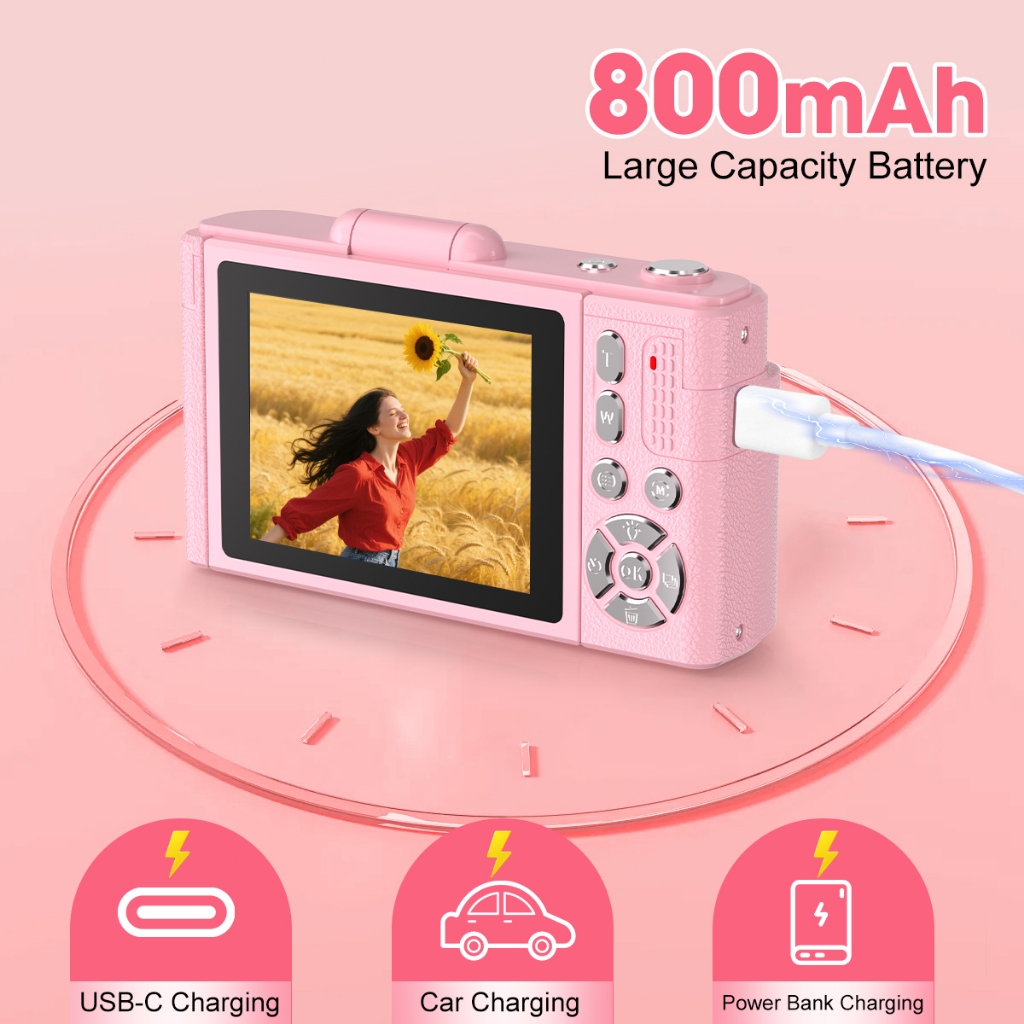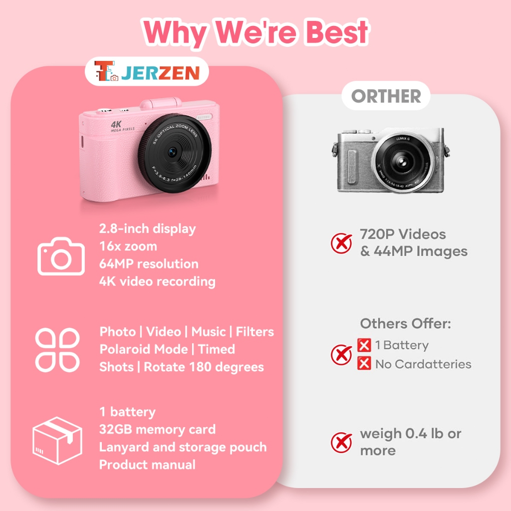 T-JERZEN Kamera Digital 64MP 4K Layar Putar 180° Zoom 16x Cocok untuk pemula dan content creator V5