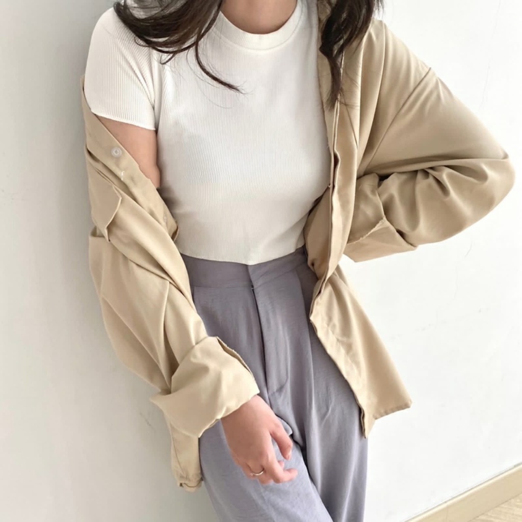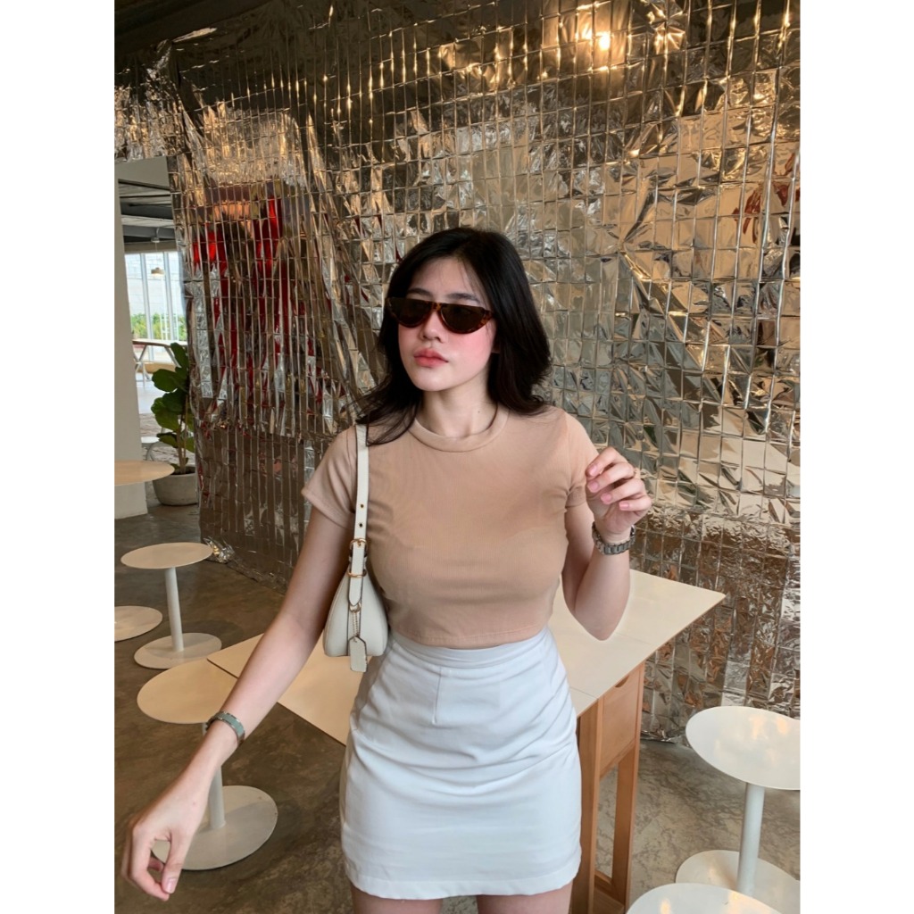 Basic Crop Knit Rib Top Wanita L-XL