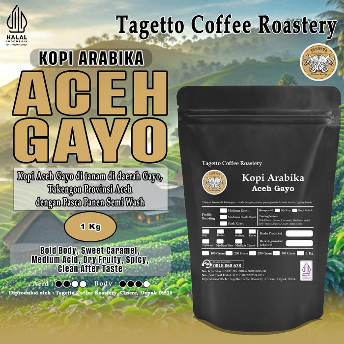 BIJI KOPI ARABIKA ACEH GAYO 1KG | SPECIALTY ARABICA BEAN GROUND BUBUK 1 KG TAGETTO COFFEE - MEDIUM ROAST BIJI KOPI