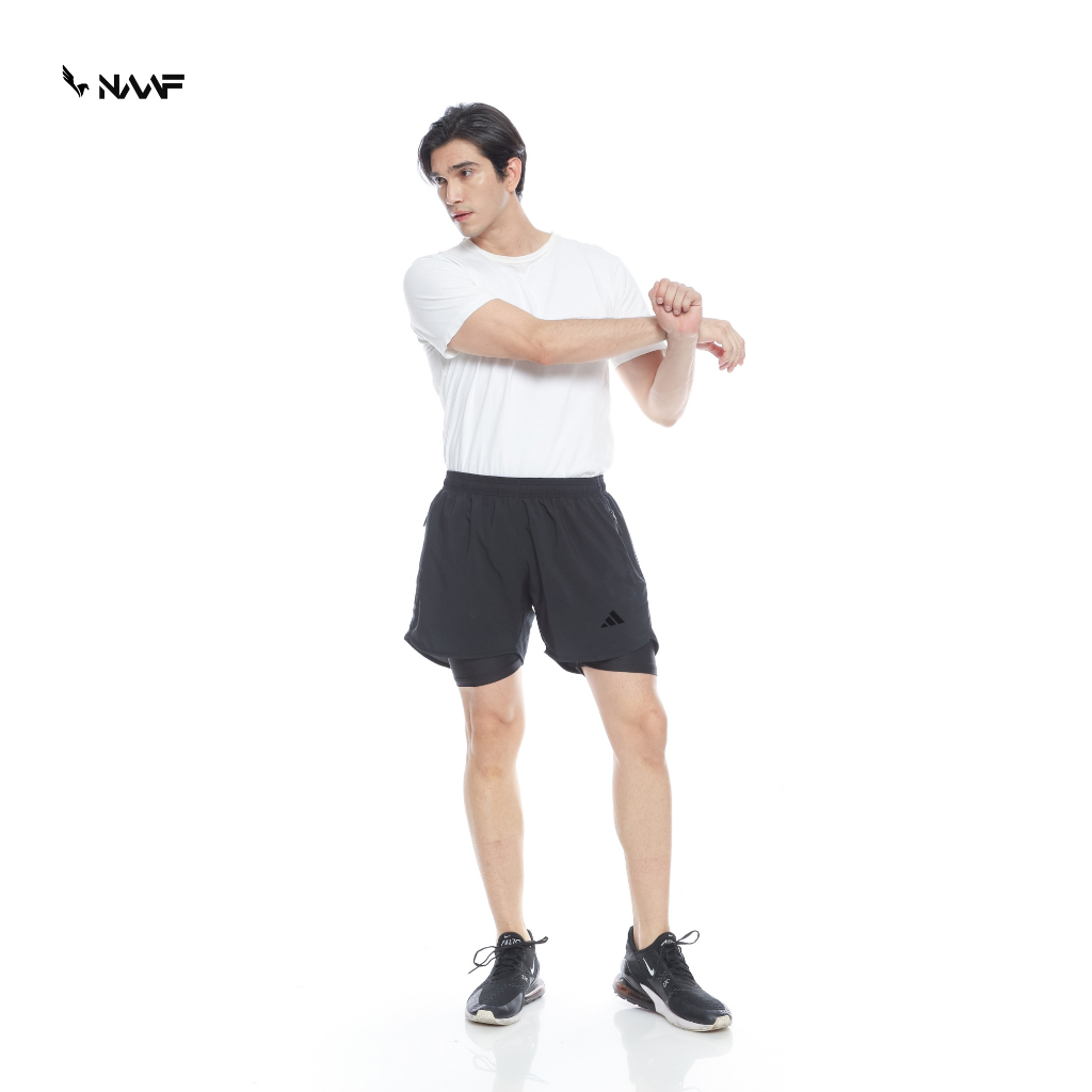 NAAF - Celana Olahraga Pendek Pria Running Short Pants Sporty Full Black 2in1 Legging Micro Stretch Premium