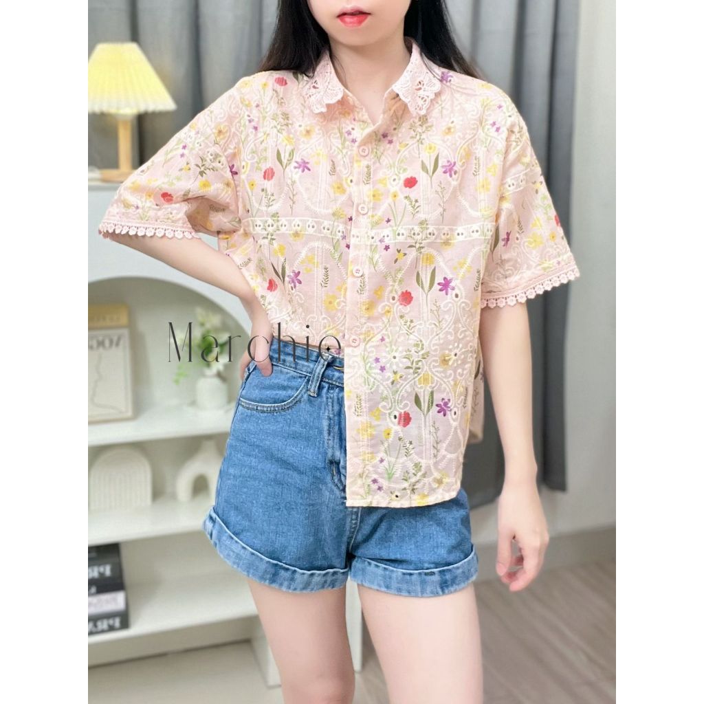 [MARCHIE] READY STOCK BANGKOK - Gardenia Top / Atasan Blouse Wanita Kerah /Baju Kemeja Bordir Bunga