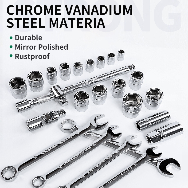 ISKU Tool Kit Set Kunci Sok set 37pcs 24gigi Kunci Pas Set Kunci Mata Sok Lengkap 37 pcs Kunci Shock Set Lengkap Kunci Ring Pas Set 8-19mm 1/2