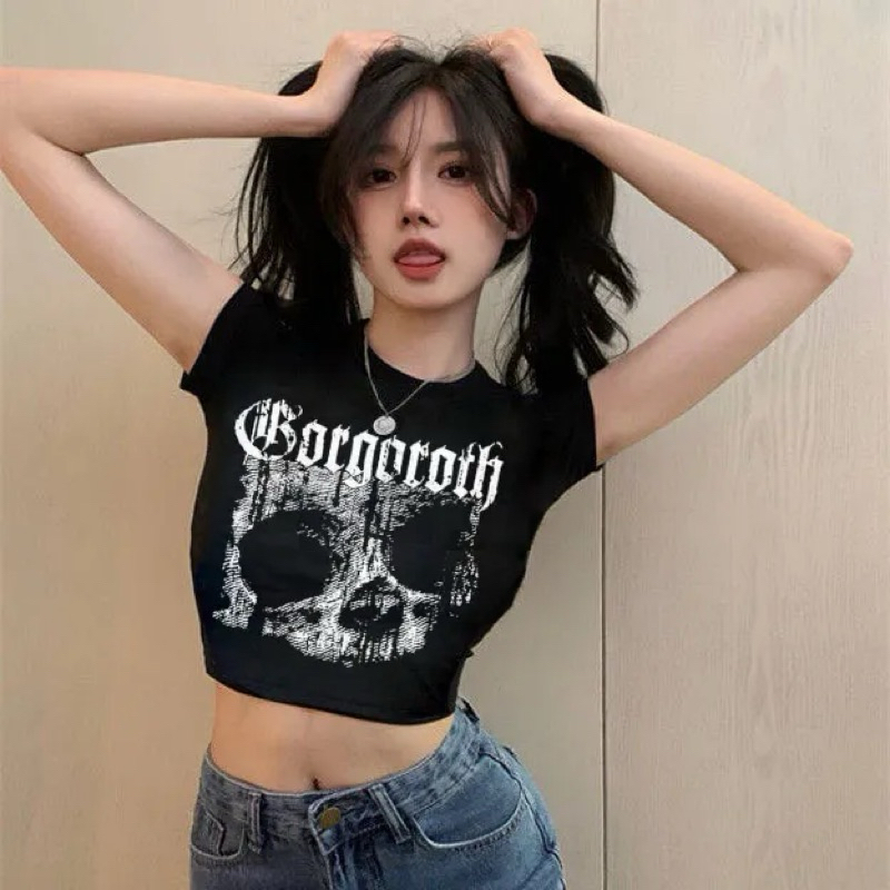 Crop Top Wanita GORGOROTH Rib Lentur Nyaman LD 88, P 40