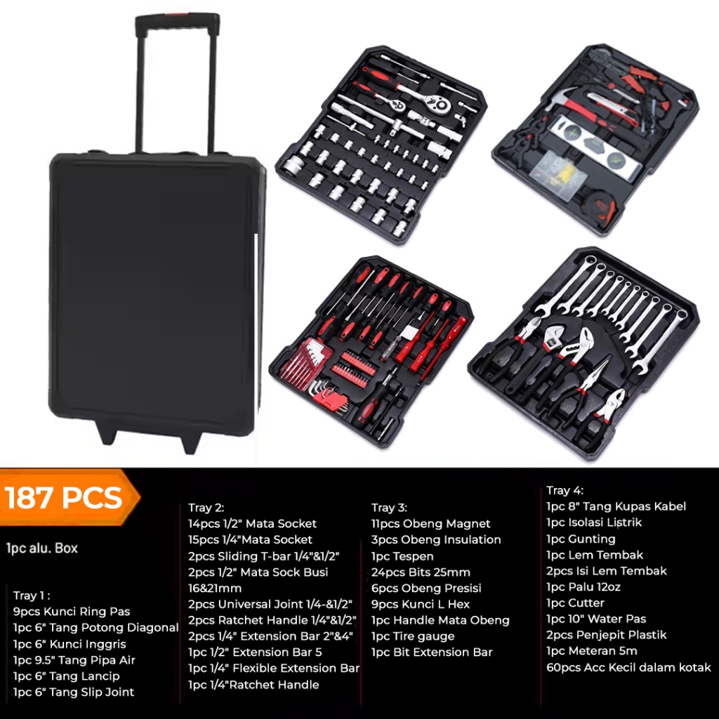 CUTA ToolKit Set 187Pcs Kunci Sok Set Shocket Set CR-V Tool kit Lengkap Perkakas Bengkel Dan Rumah