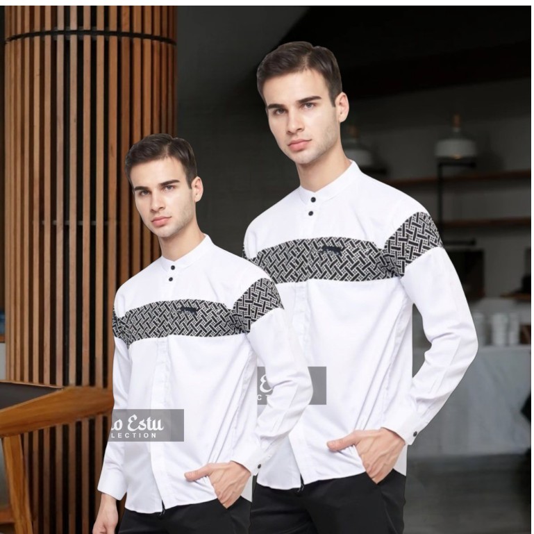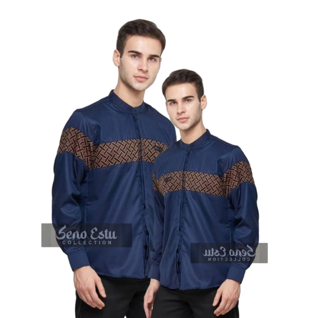 Baju Koko Couple Ayah dan Anak Laki-laki Motif Batik Kobata Qynang Baju Koko Pria Dewasa Lengan Panjang