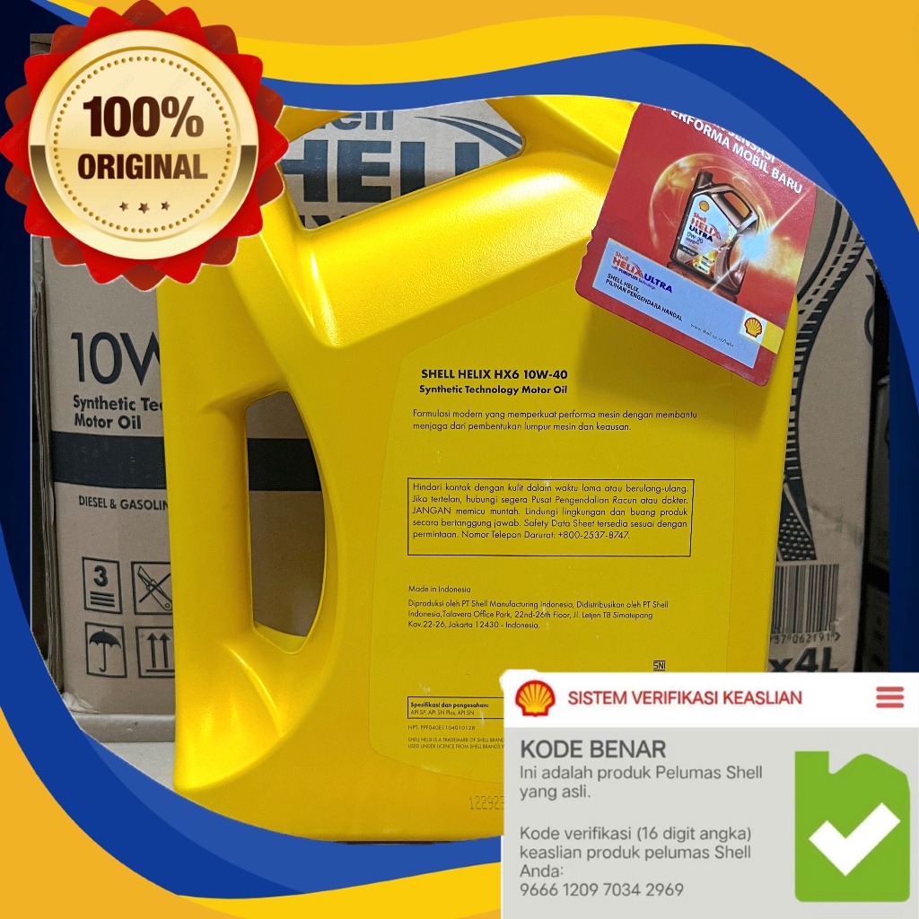 OLI MESIN MOBIL SHELL HELIX HX6 10W-40 | HX6 4 LITER | ORIGINAL BARE HIJAU HX6 4L 10W40
