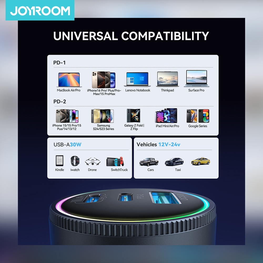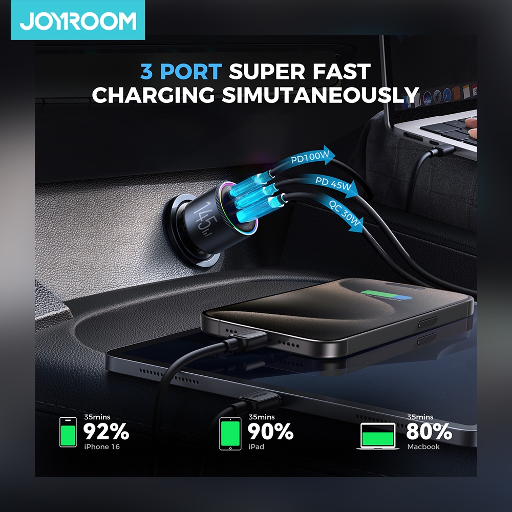 JOYROOM CCN07 Car Charger Fast Charging 145W 3-Port 2PD+1QC3.0