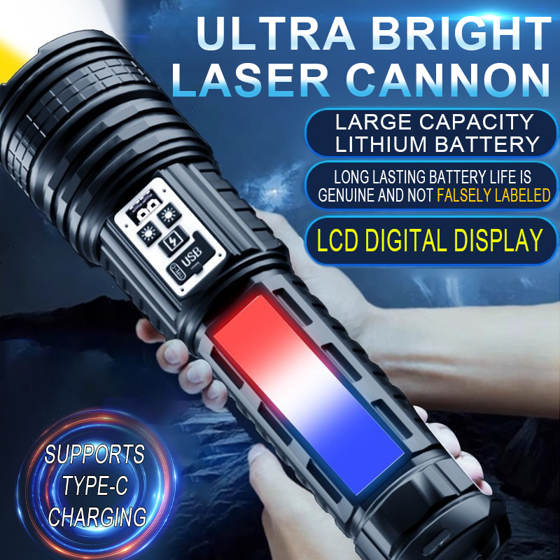 LED Senter Super Terang Dua Warna 10000LM Tahan Berat USB Bisa Dicas Kembali Tahan Air PowerBank Cahaya Kuning dan Cahaya Putih Dilengkapi dengan Lampu Strobe 3 Warna dan Lampu Larangan