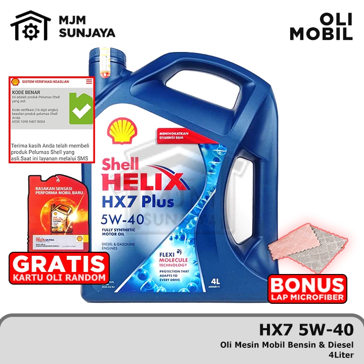 [BARE] Oli Mesin Shell Helix HX7 SAE 5W-40 4 Liter SCAN Bensin Solar Diesel 4Liter 5W40 Full Synthetic API SP SN PLUS ACEA A3/B3 HX 7 5W 40 4L