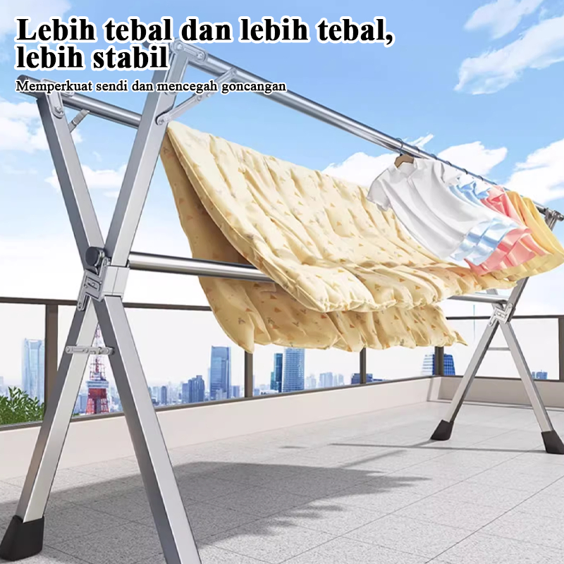 304 Jemuran Baju Lipat Jemuran Baju Stainless Steel 160-240cm Jemuran Pakaian Lipat Basah Tahan Karat Jemuran Hanger Portable