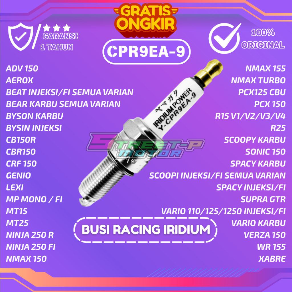 BUSI RACING SUPER IRIDIUM CPR9EA-9 BEAT,SCOOPY,VARIO,R15,NMAX,BYSON,AEROX,CBR150 Karbu Asli Gas Logam Kendaraan