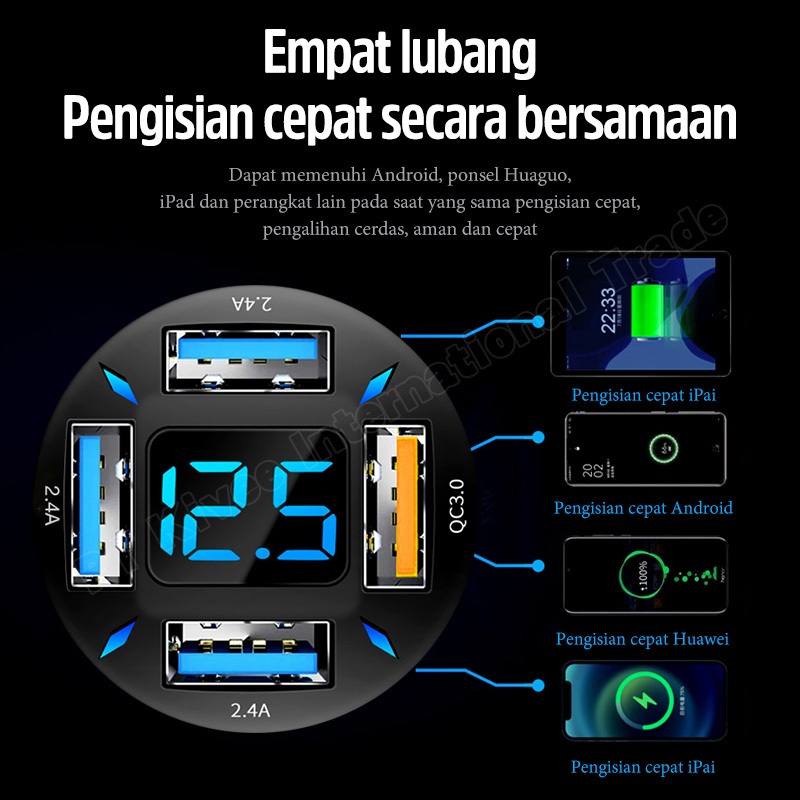 KIVEE Car Charger Mobil Fast charging 100W KV-UT94 Pro Black 4-in-1 USB LCD Display Universal