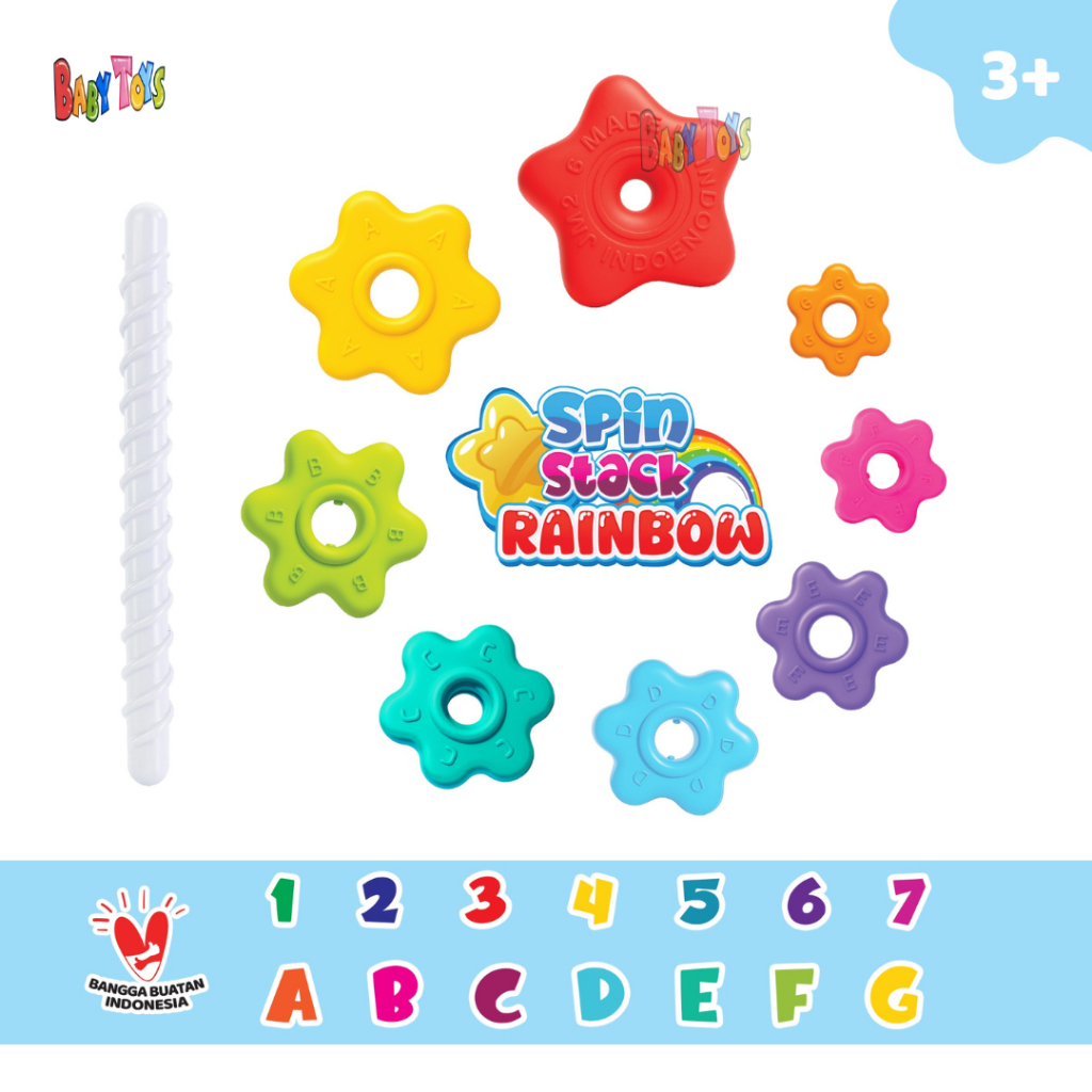 BabyToys Mainan Ring Donat Susun Putar Anak Bayi Jumbo Edukasi Rainbow Tower Spinner Stack Edukatif