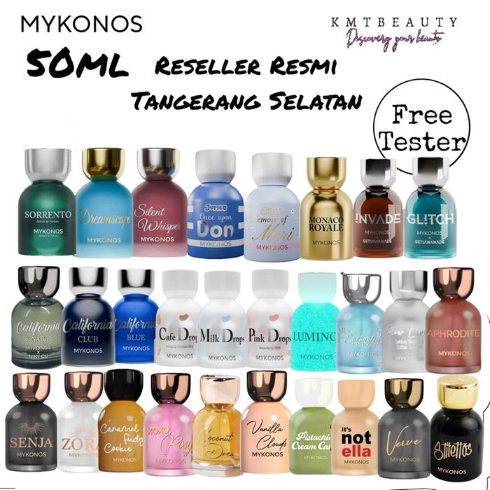 MYKONOS 50ML EXTRAIT DE PARFUM & EAU DE PARFUME SORRENTO, DREAMSCAPE, SILENT WHISPER, CALIFORNIA, LUMINOS, MILK DROP - VERVE