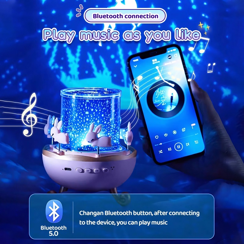 proyektor anak speaker bluetooth lampu tidur music box lampu proyektor galaxy aurora hadiah ulang tahun anak perempuan
