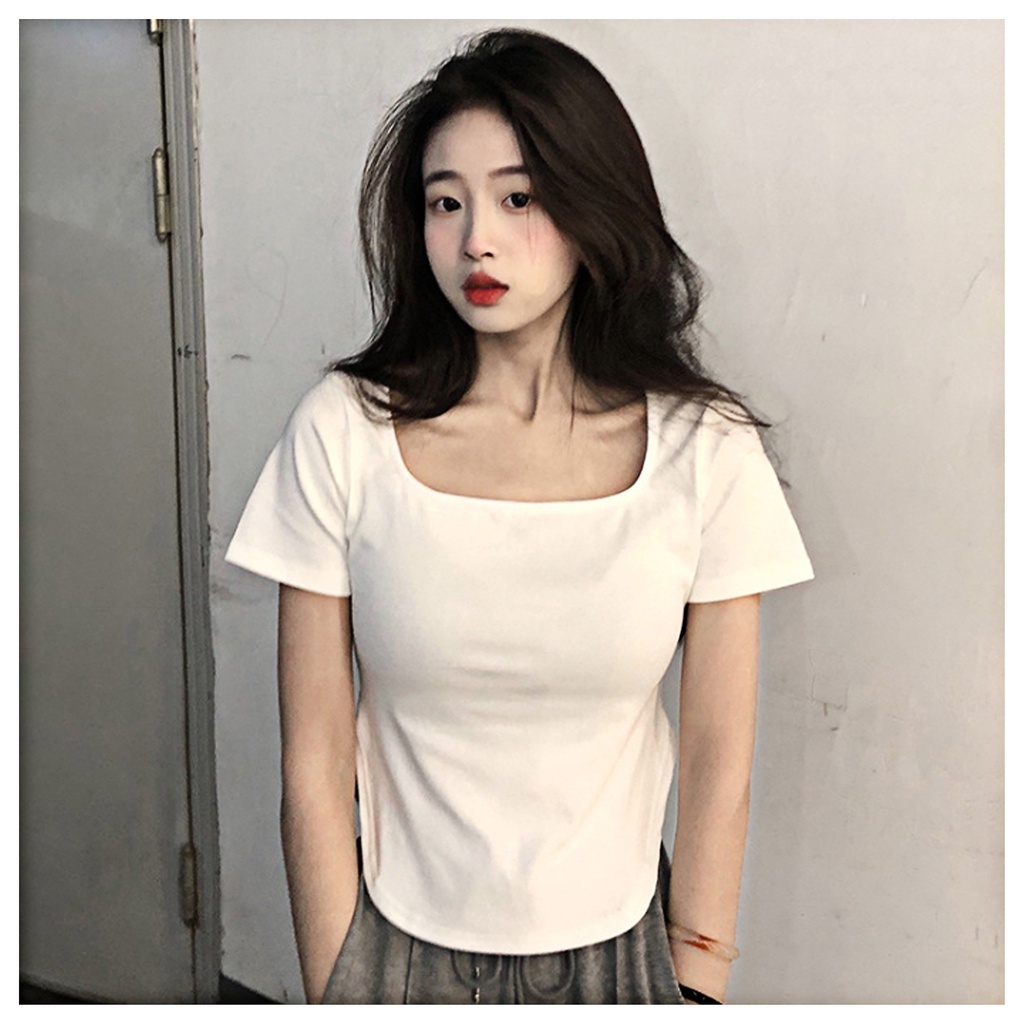 7721 Square Neck Crop Top Slit Short Sleeve : Kaos Crop Wanita Lengan Pendek Slit Oval