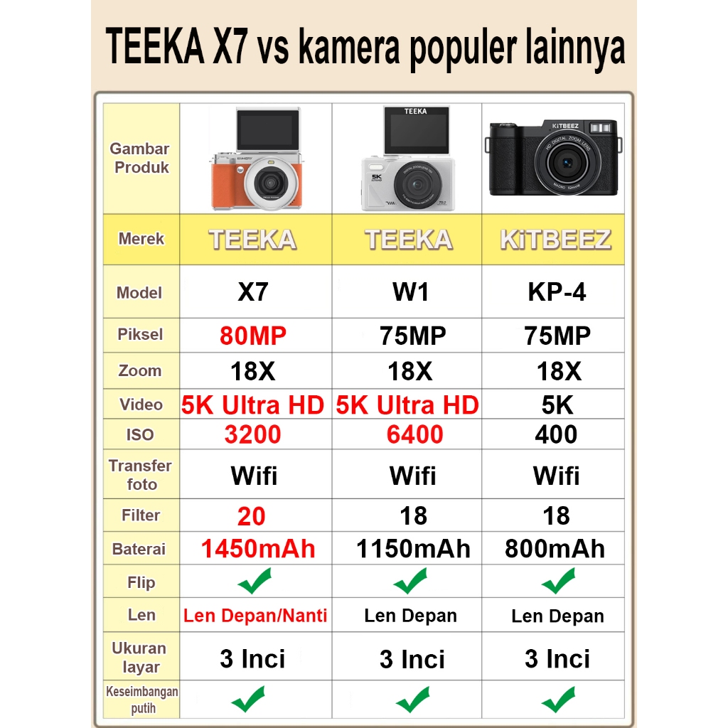 [TEEKA X7] 80MP Kamera Digital 5K Wifi Flip Screen 18X Digital Zoom Dengan Retro Fliter Effect