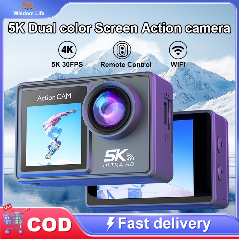 Kamera Aksi Olahraga AT-M40R 5K 30FPS Layar Ganda EIS Remote Control WiFi Sudut Lebar 170° Tahan Air 30M untuk Menyelam