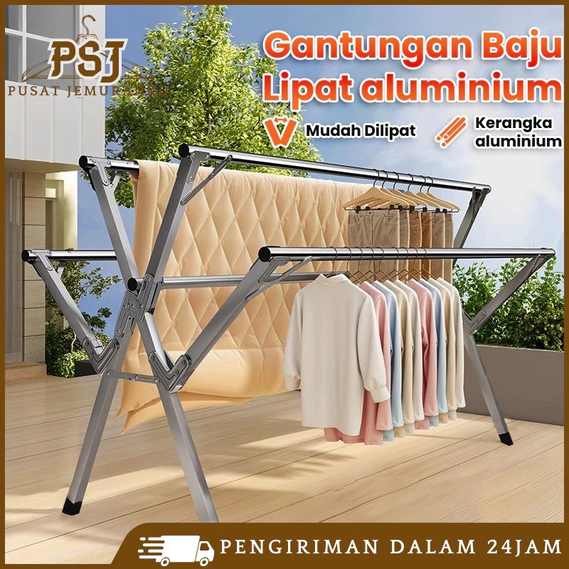 Jemuran Baju Stainless Steel 240Cm Jemuran Pakaian Lipat Basah Tahan Karat Jemuran Hanger Portable Jemuran Baju Lipat Jemuran Pakaian Basah Tahan Karat【Tidak Diperlukan Instalasi】