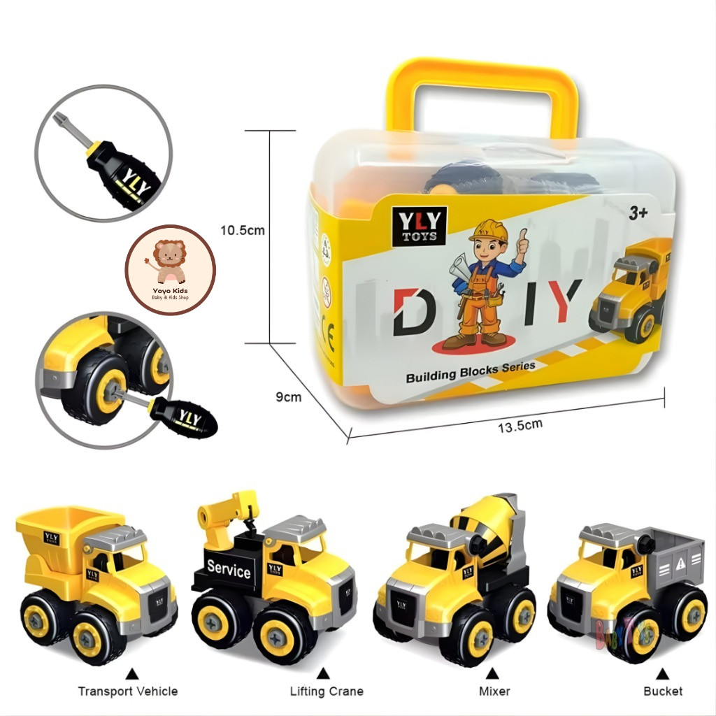 Mainan Anak Laki Laki Mobil Mobilan Konstruksi Isi 4 DIY SNI Set Kado Ulang Tahun Anak 3 4 tahun
