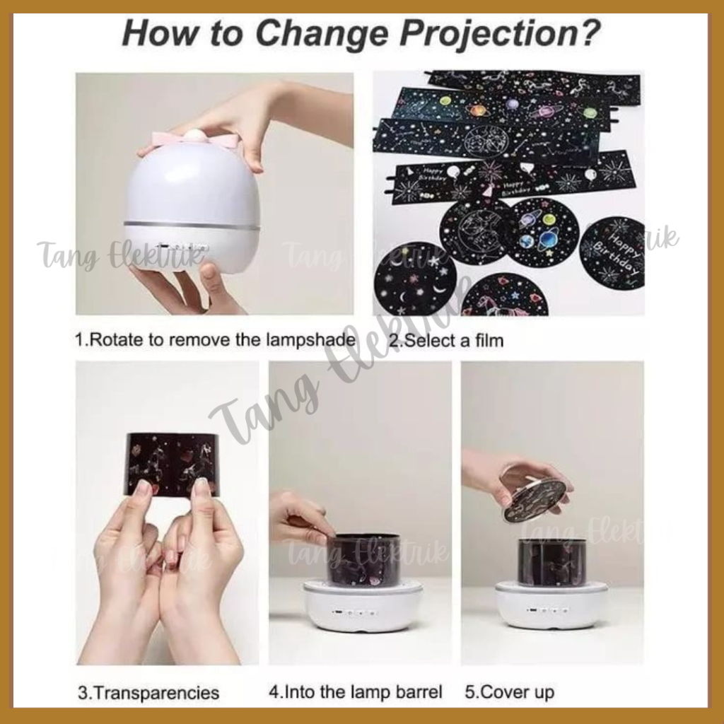 Lampu Tidur Proyektor Langit Bulan Bintang Rotasi Rechargeable