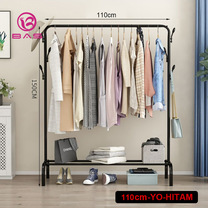 BAS Gantungan baju rak besi rak jemuran portable stand hanger single pakaian rak baju