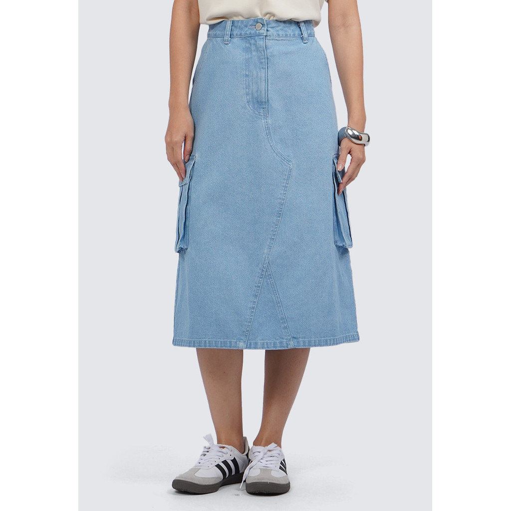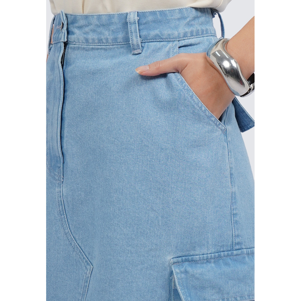 Et Cetera Denim Midi Skirt with Side Pocket LT. BLUE