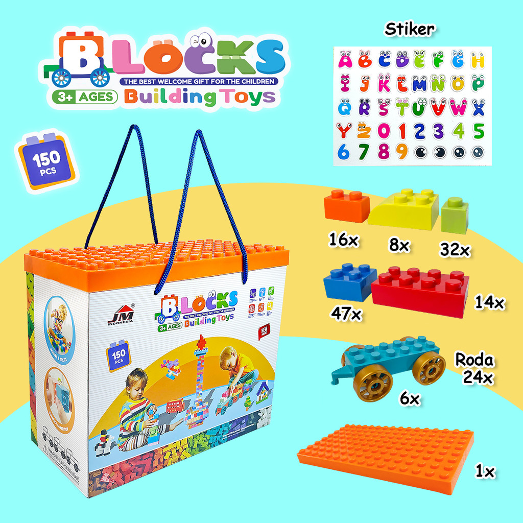 Bronsis - Mainan Edukasi Anak Balok Susun Anak isi 150 Pcs DIY Block Puzzle Building Blocks DIY Bricks Berbahan ABS