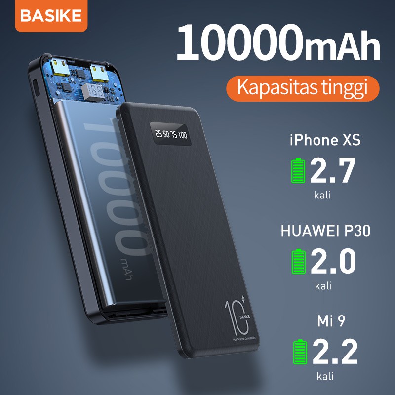 (Hot)Basike Powerbank Fast Charging 30000 20000Mah 10000Mah Dual Usb Mini Murah With Senter Original
