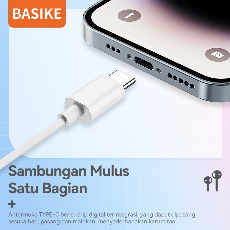 BASIKE Headset kabel 3.5 mm Earphone Gaming Bass Musik In Ear for Xiaomi Android asli
