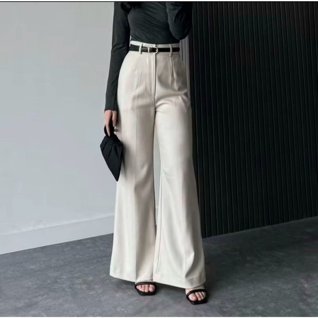 ZS-Etta Pants - Celana Panjang Korea Style Flare Pants - HighWaist Celana Kerja Kantor Casual Trouser Katun Premium