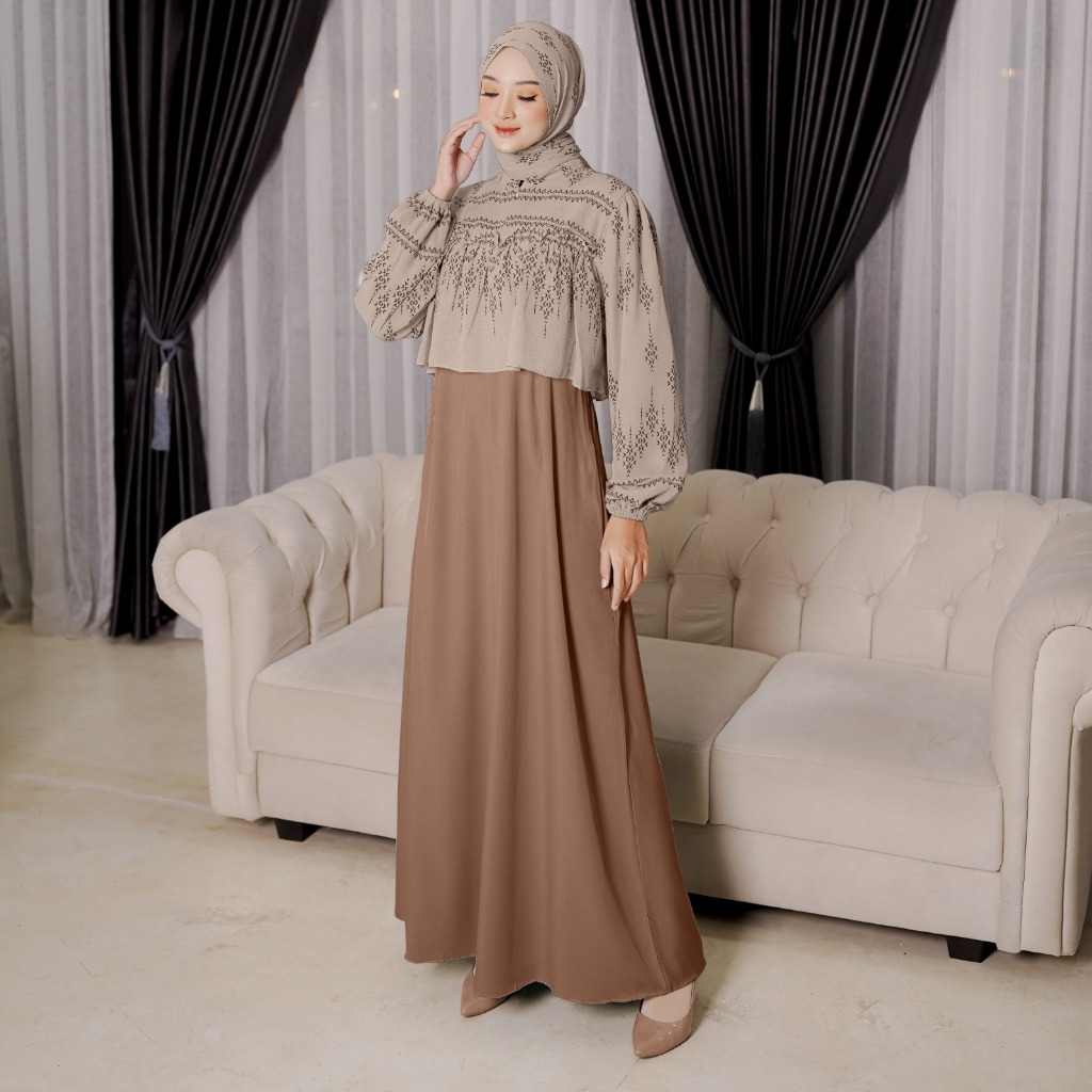 Rempel Leaf Motif Couple Set Pasutri Setelan Gamis Koko Free Hijab Pasmina by Demore