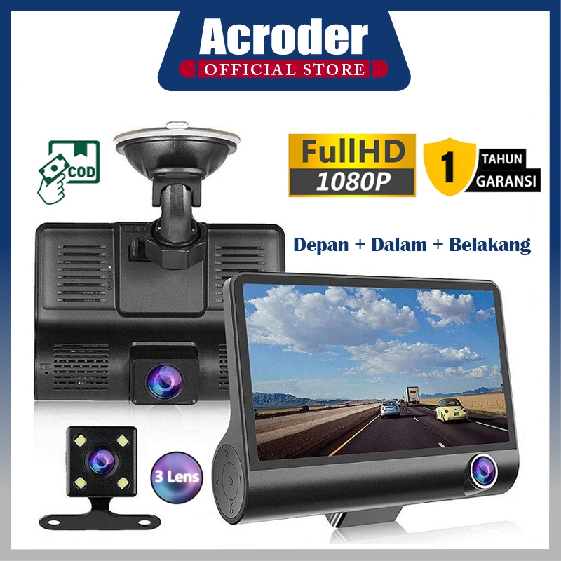 Acroder Dashcam Mobil 3 Cameras 1080P HD 4.0 Inch Night Vision Loop Recording