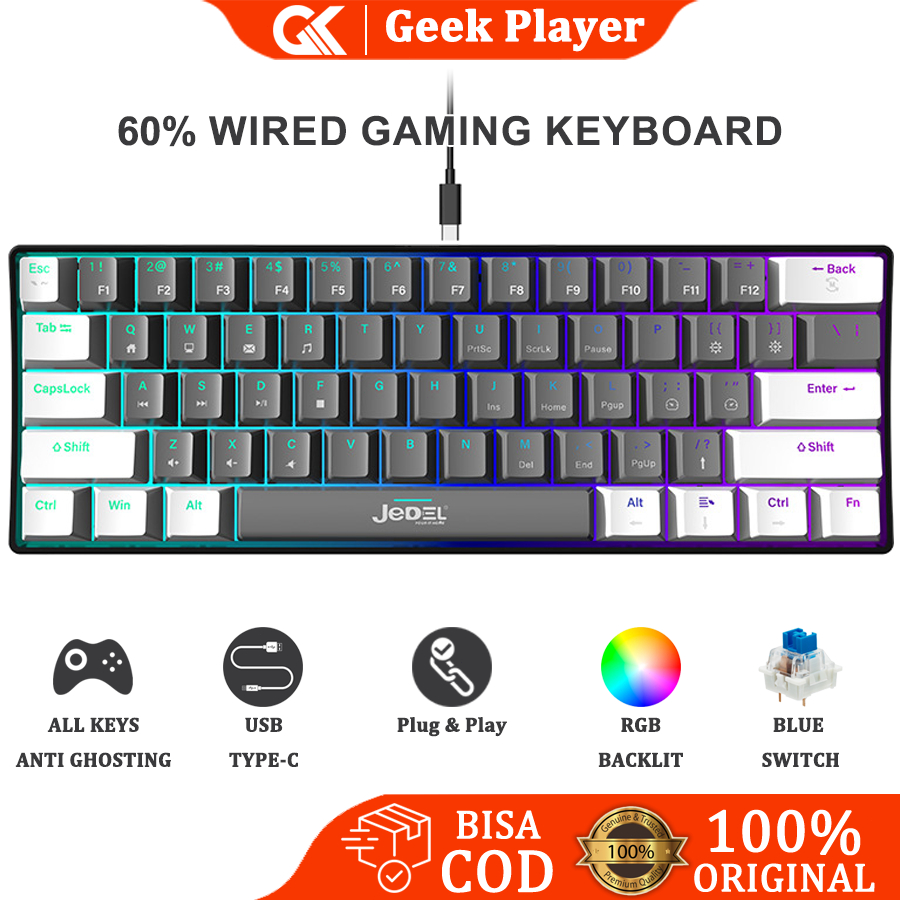 Mechanical Gaming Keyboard Wired Rgb Light 61 Keys Pbt Keycap Blue Switch Keyboard60 PERSENMechanical