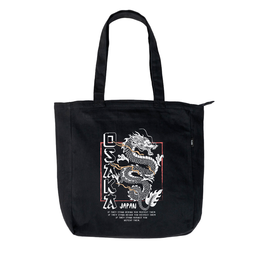 Flade Studios Totebag Kanvas Hitam Resleting - Tas Kuliah Pria Wanita - City Series