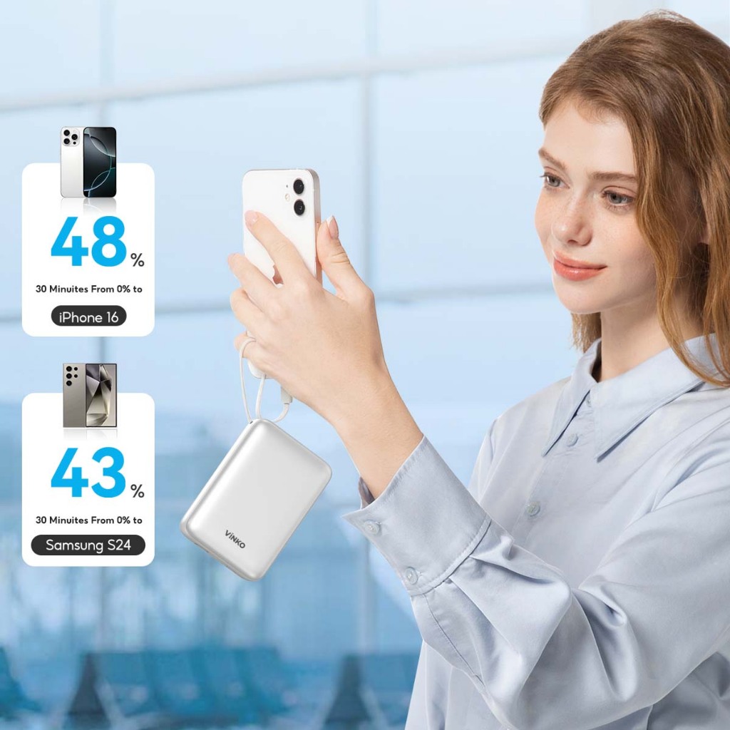 Vinko V10 Powerbank 20.000 Mah 22.5W Built-In Usb-C/Lingtning Cable For Android/Iphone 17