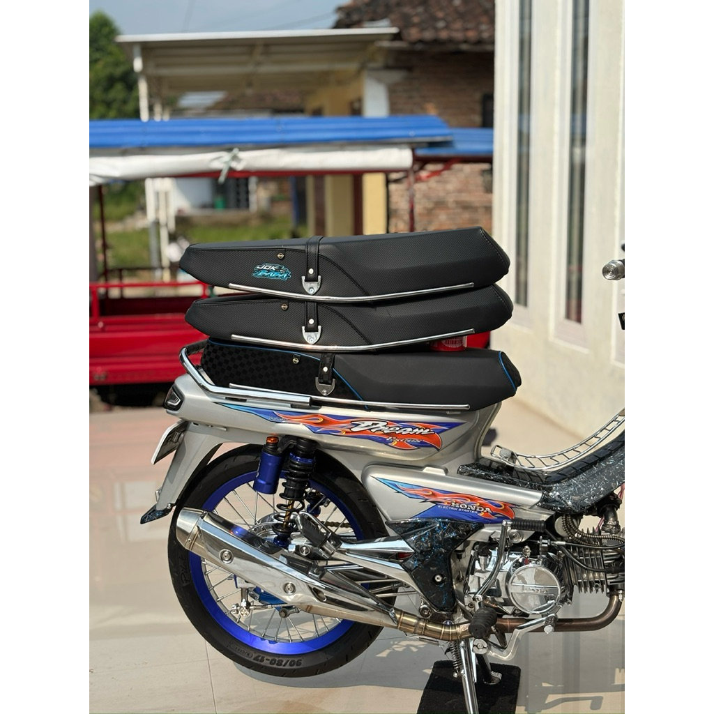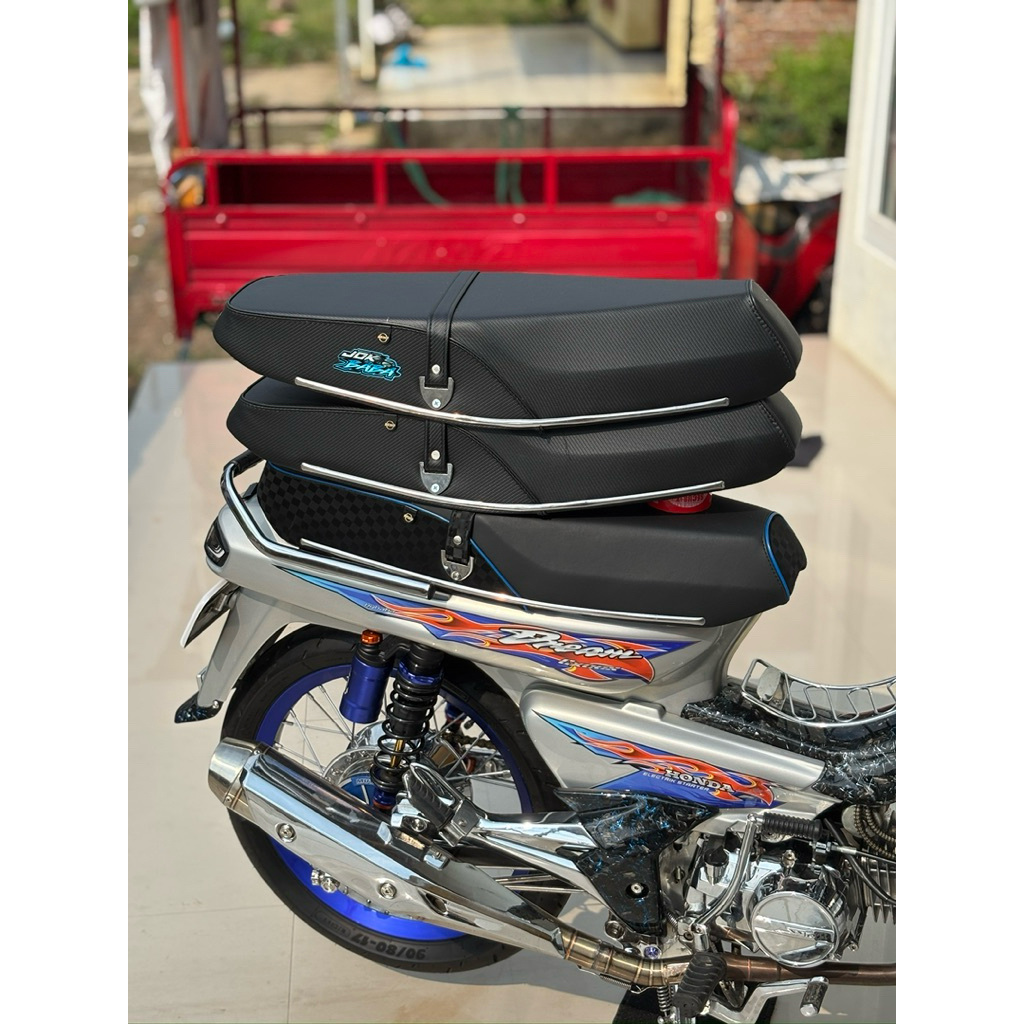 Jok Honda Astrea Prima, Star type KULIT MBTECH RIDER/ model carbon/bergaris Anti Gembos Jok Honda Astrea Prima, Star Made In Mojokerto