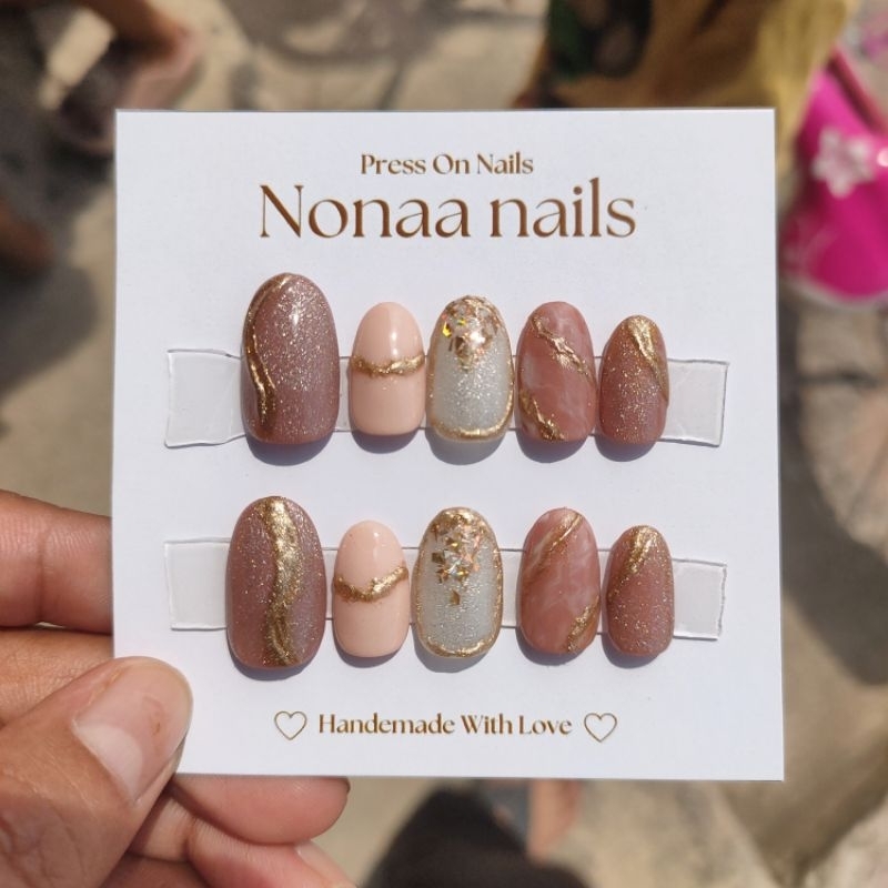 PRESS ON NAILS NUDE PINK CAT EYE PREMIUM SUPER MEWAH