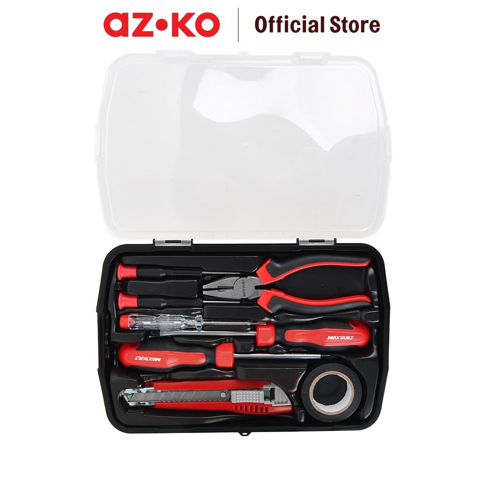 AZKO Maxbuilt Set 8 Pcs Perkakas Rumah Tangga - Merah Set Tool Kit Multipurpose Hand Tool Perkakas Bengkel Tukang