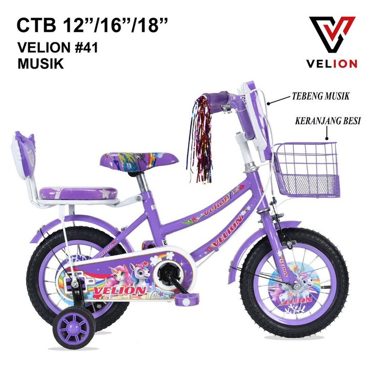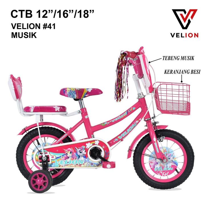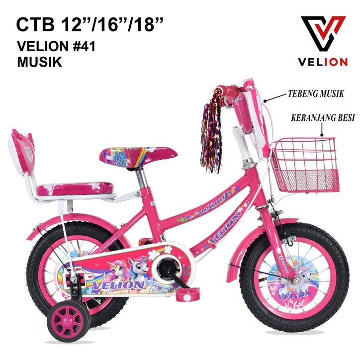 Sepeda Anak Perempuan CTB VELION MINI #41 Ada MUSIK #42 #10 TANPA MUSIK ukuran 12" 16" 18" inch ORIGINAL Roda 3 Terlaris