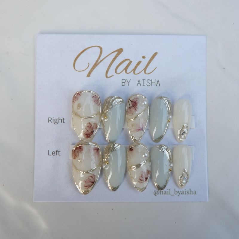 nail by aisha | korean nails floral custom press on nails