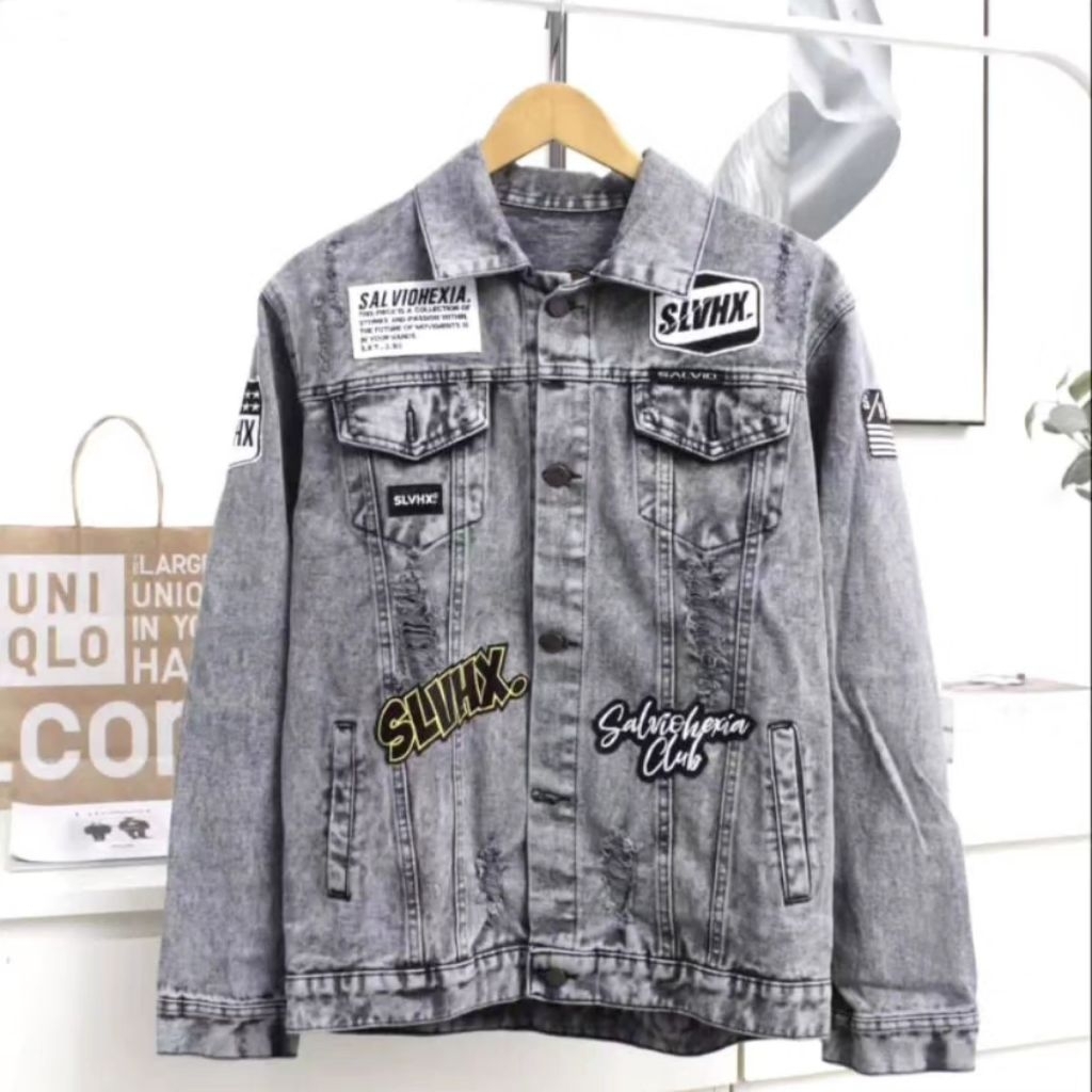 Jaket Jeans Pria Bordir Salviohexia Jaket Denim Cowok Emblem M-XXXL Oversize Terbaru