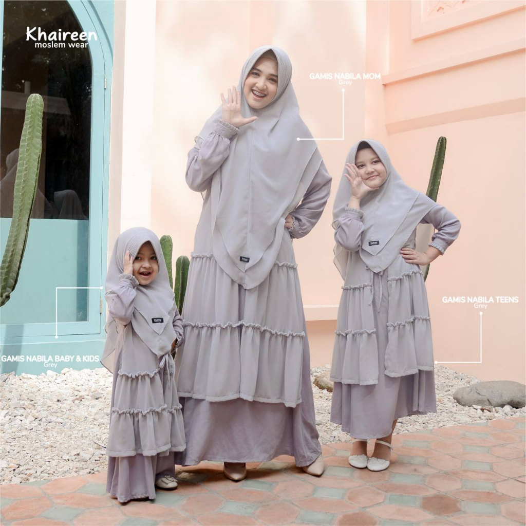 KHAIREEN Gamis Couple Mom and Kids Gamis Nabila Grey